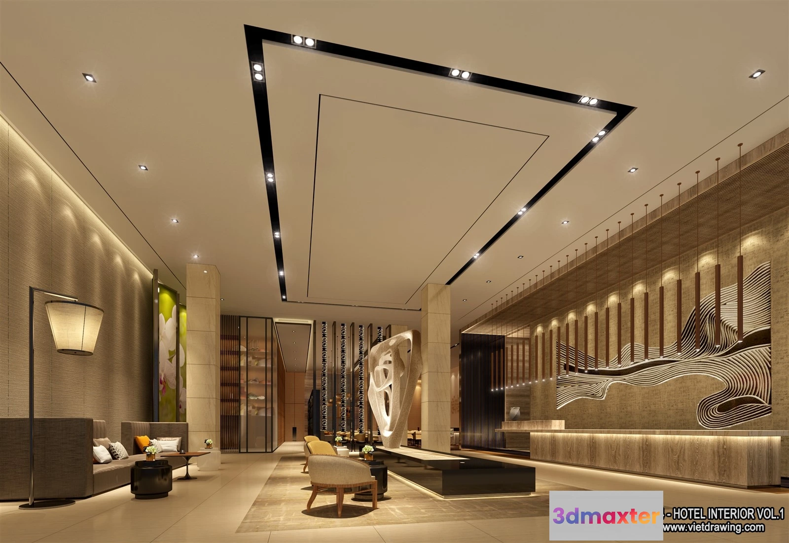 3D Models / 3D Scenes / Interior / Commercial Spaces / Hotel – Lobby – 3D Interior Scene – 3D Models – 499 3D Max