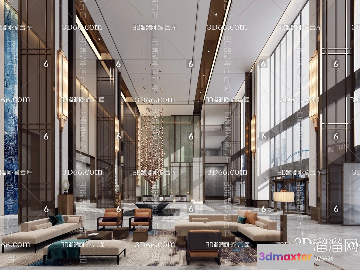 3D Models / 3D Scenes / Interior / Commercial Spaces / Hotel Lobby 3D Scenes – 0492