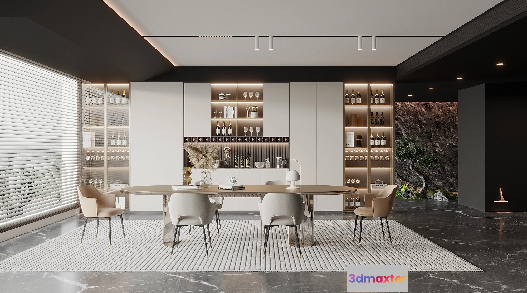 3D Models / 3D Scenes / Interior / Dining Room / HOUSE SPACE 3D SCENES – DINING ROOM – 0057