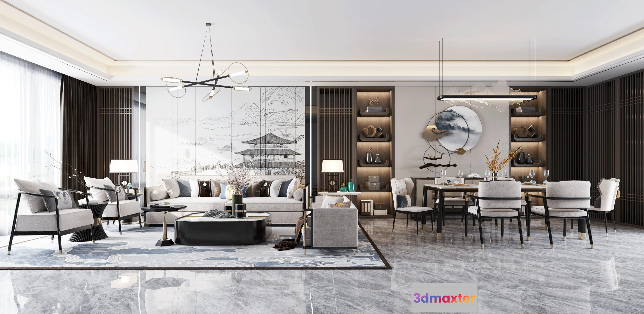 3D Models / 3D Scenes / Interior / Living Room / HOUSE SPACE 3D SCENES – LIVING ROOM – 0056