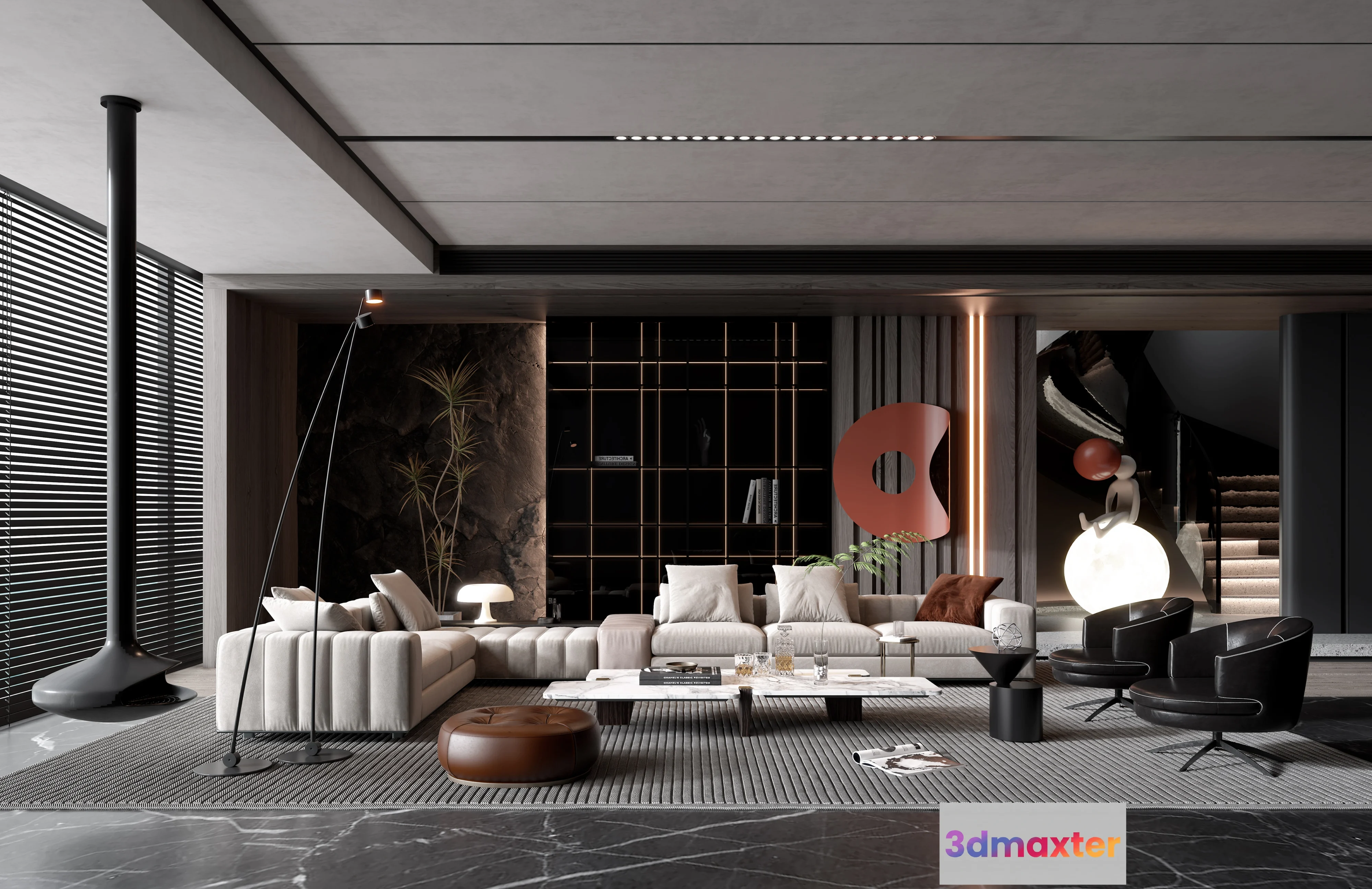 3D Models / 3D Scenes / Interior / Living Room / HOUSE SPACE 3D SCENES – LIVING ROOM – 0188