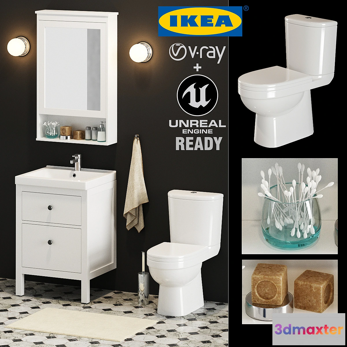 Set for the bathroom as well as prepared for export to unreal engine 4
