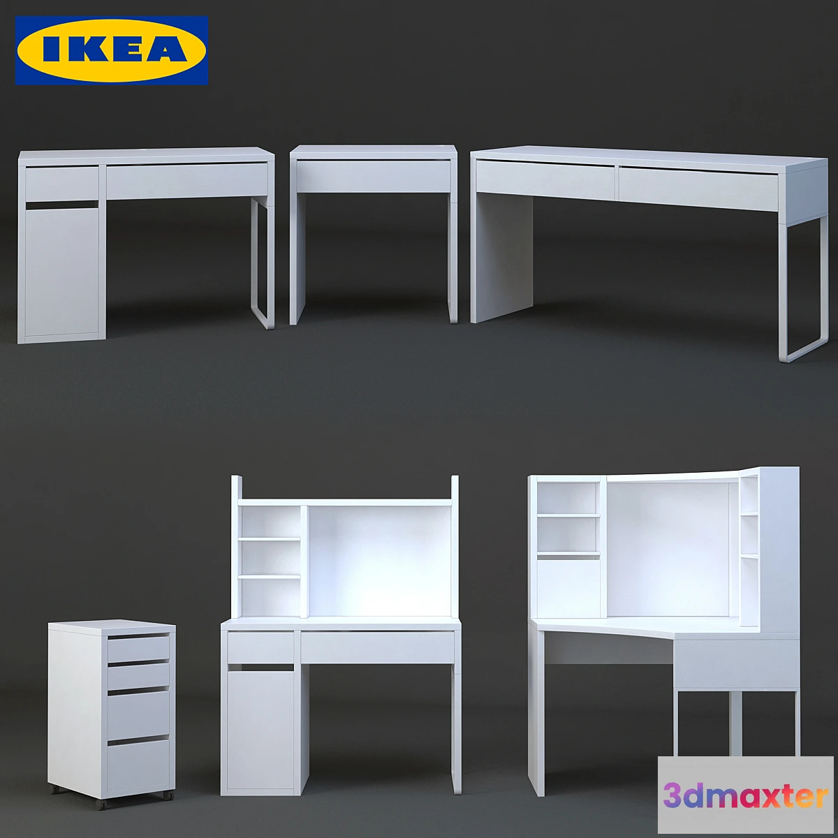 Set of six models of office furniture Micke series from the world famous IKEA In the model presented products: 902.130.78 302.130.76 802.130.74 902.143.08 099.030.14 502.507.13