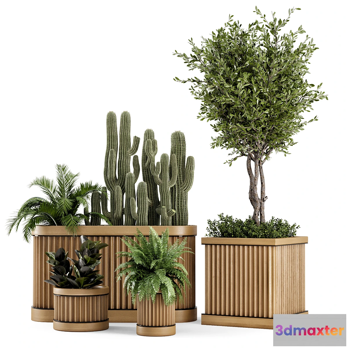 Name: Indoor Plants Bush and Tree in Wooden Pot – Set 401