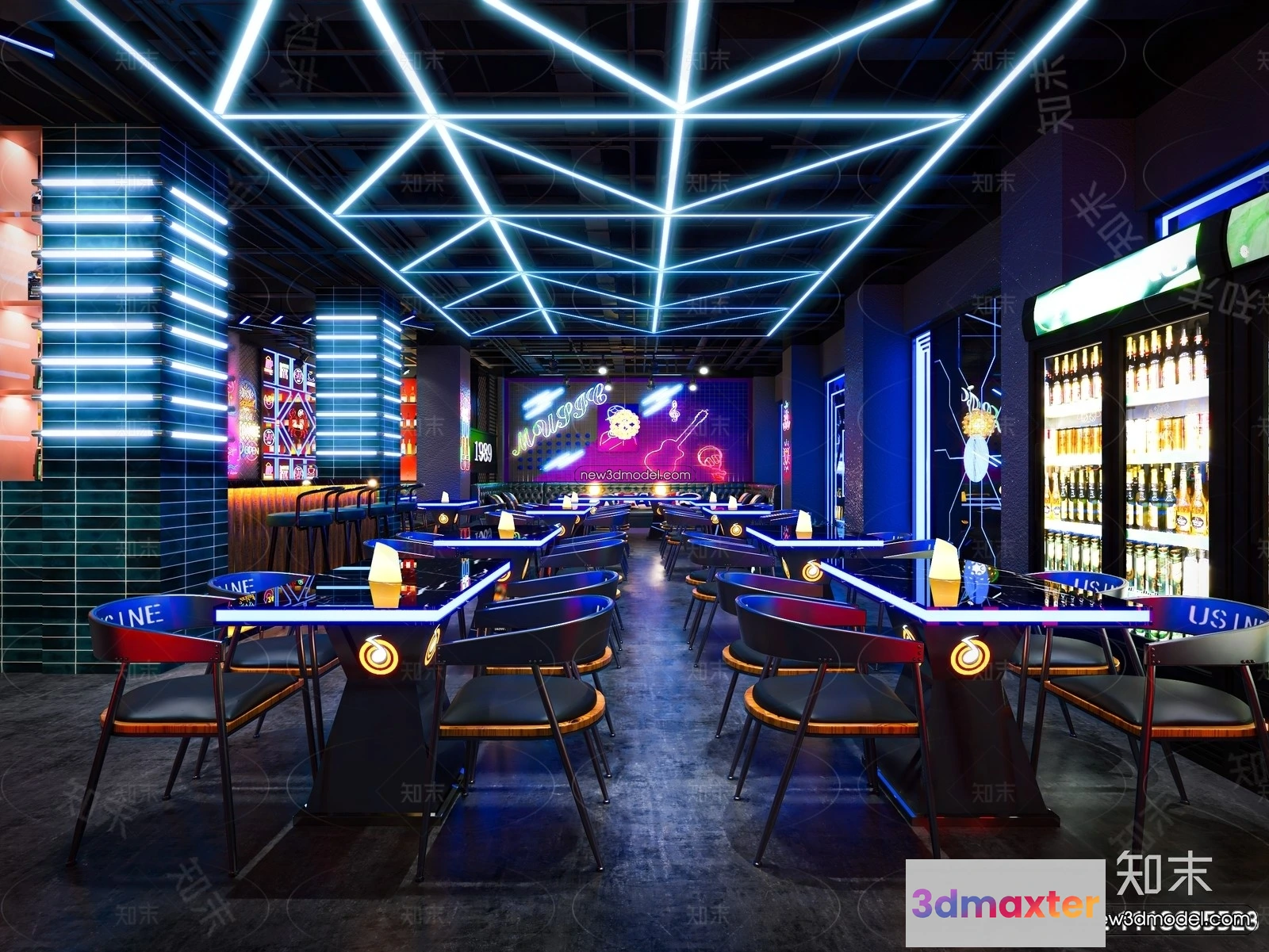 Interior 3D Model of Bar – 3D Blocks – 041 – Karaoke 3D Model – VRAY