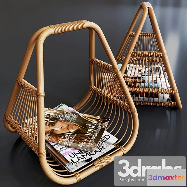 3D Models / Decoration / Books / Journals set and wicker stand made of natural rattan