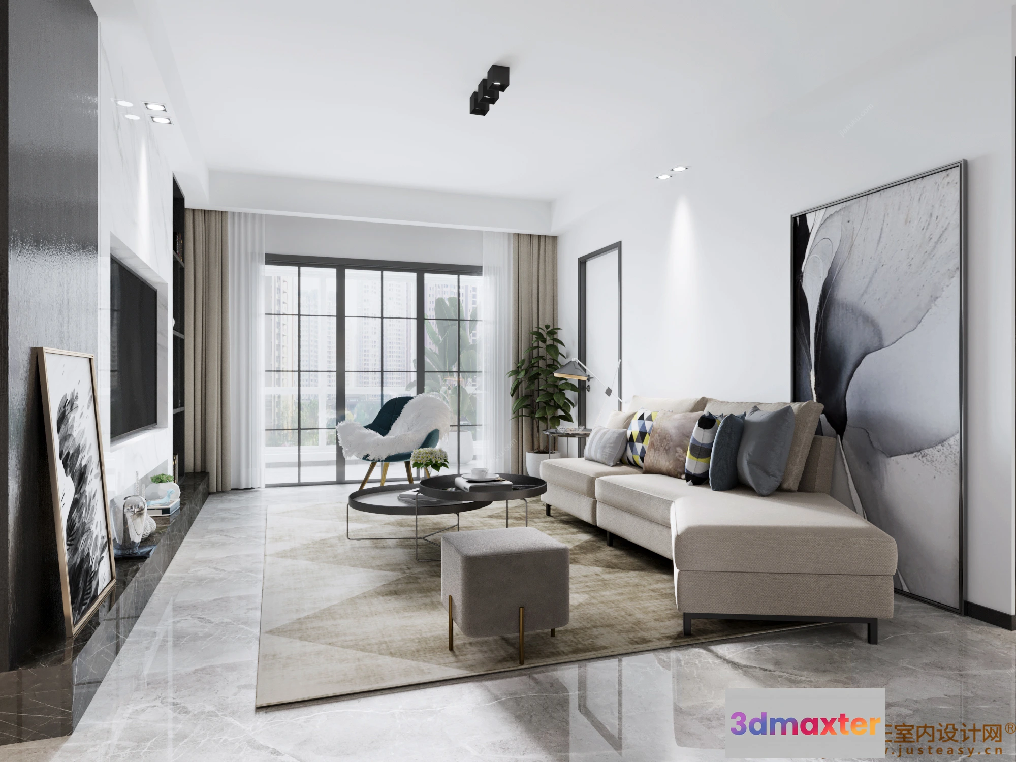 3D Models / 3D Scenes / Interior / Living Room / Justeasy 20 – House Space – 01 – LIVINGROOM – Jj08