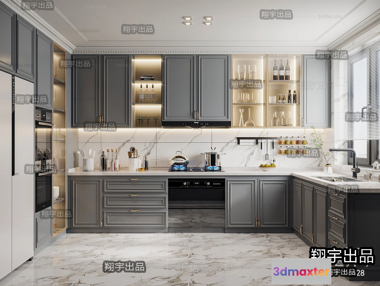 3D Models / 3D Scenes / Interior / Kitchen / Kitchen 3D Interior Scene – American Style – 001 3D Max