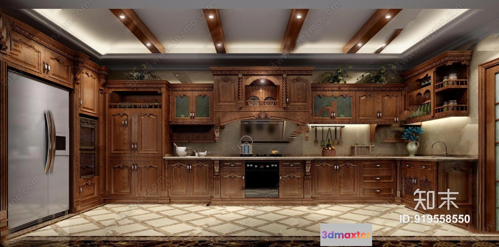 3D Models / 3D Scenes / Interior / Kitchen / Kitchen 3D Interior Scene – American Style – 007 3D Max