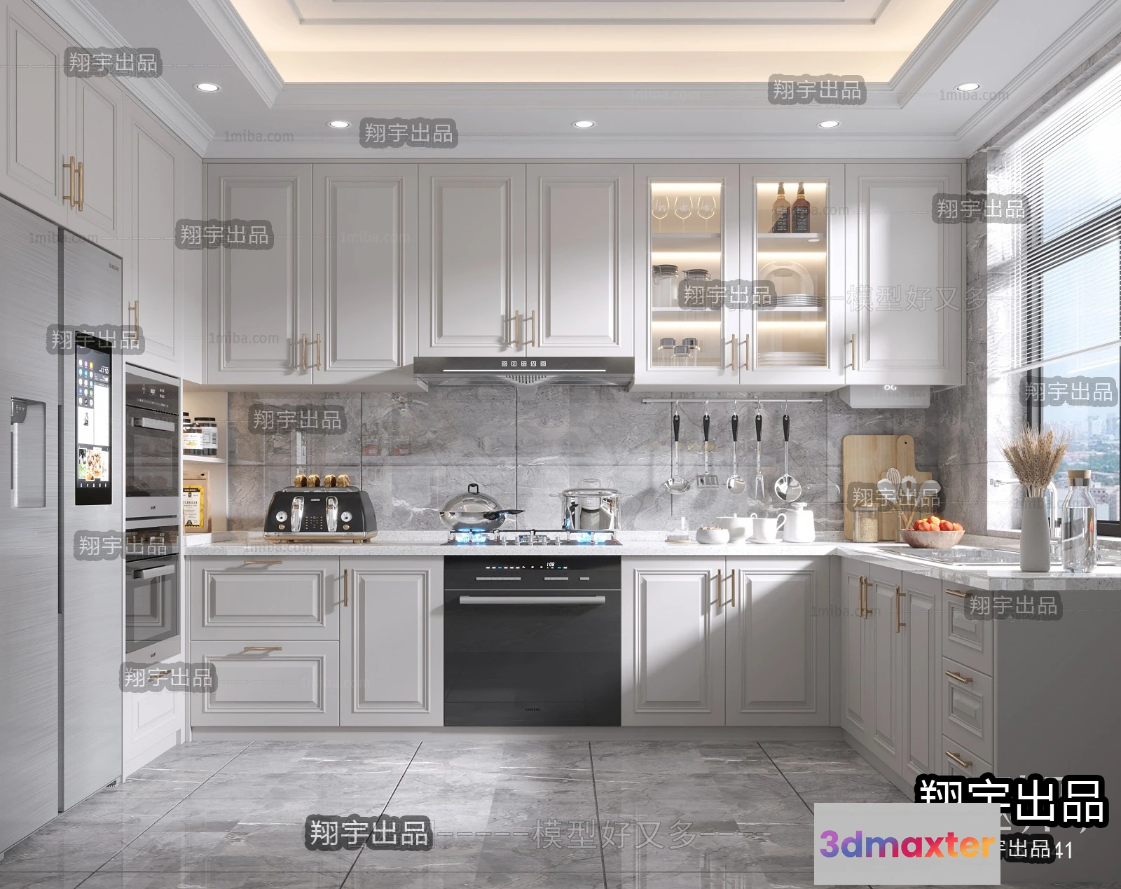 - Name: Kitchen 3D Interior Scene – American Style – 012