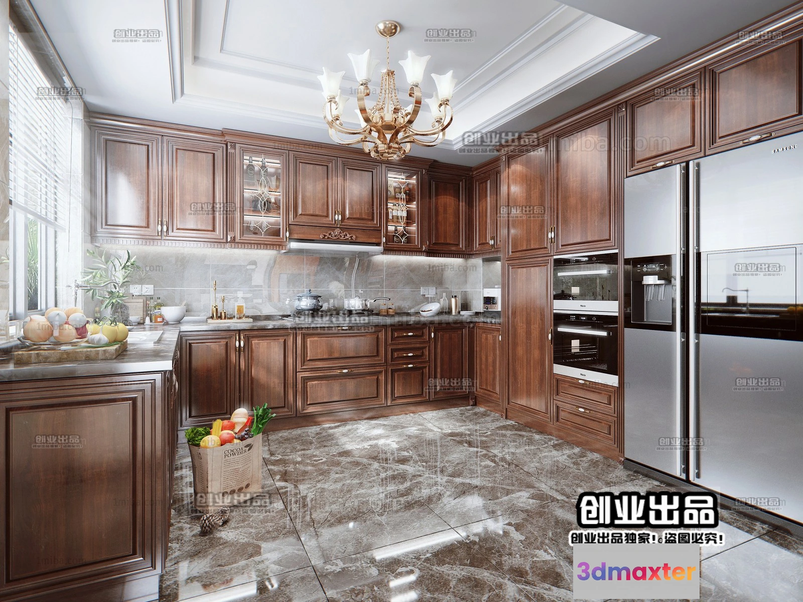 3D Models / 3D Scenes / Interior / Kitchen / Kitchen 3D Interior Scene – American Style – 019 3D Max
