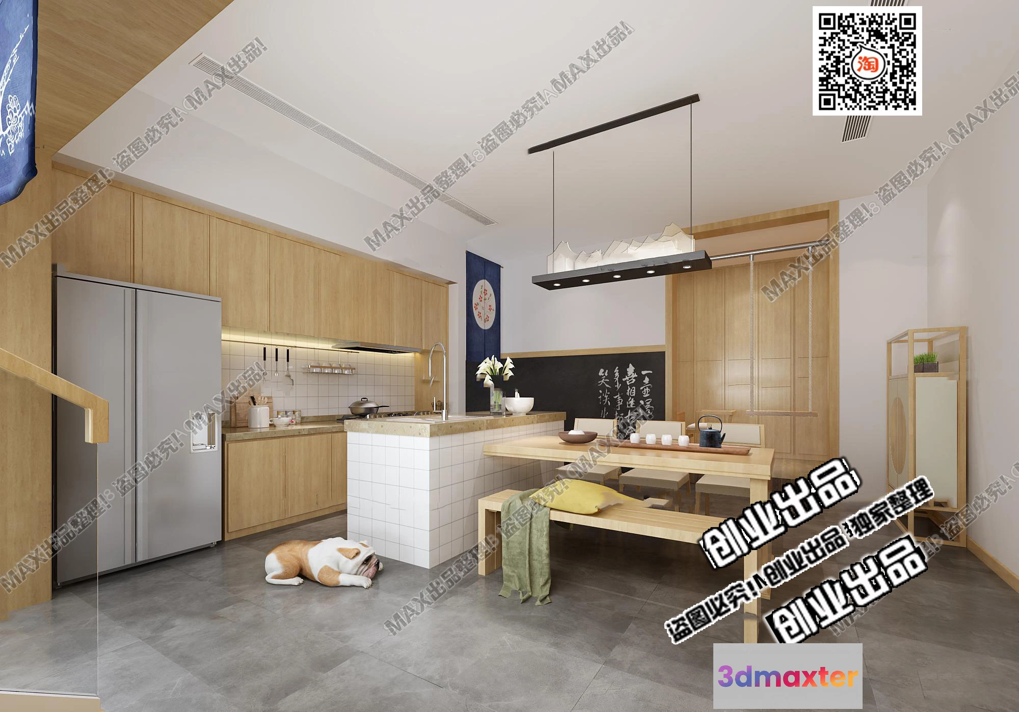 3D Models / 3D Scenes / Interior / Kitchen / Kitchen 3D Interior Scene – Japanese Style – 012 3D Max