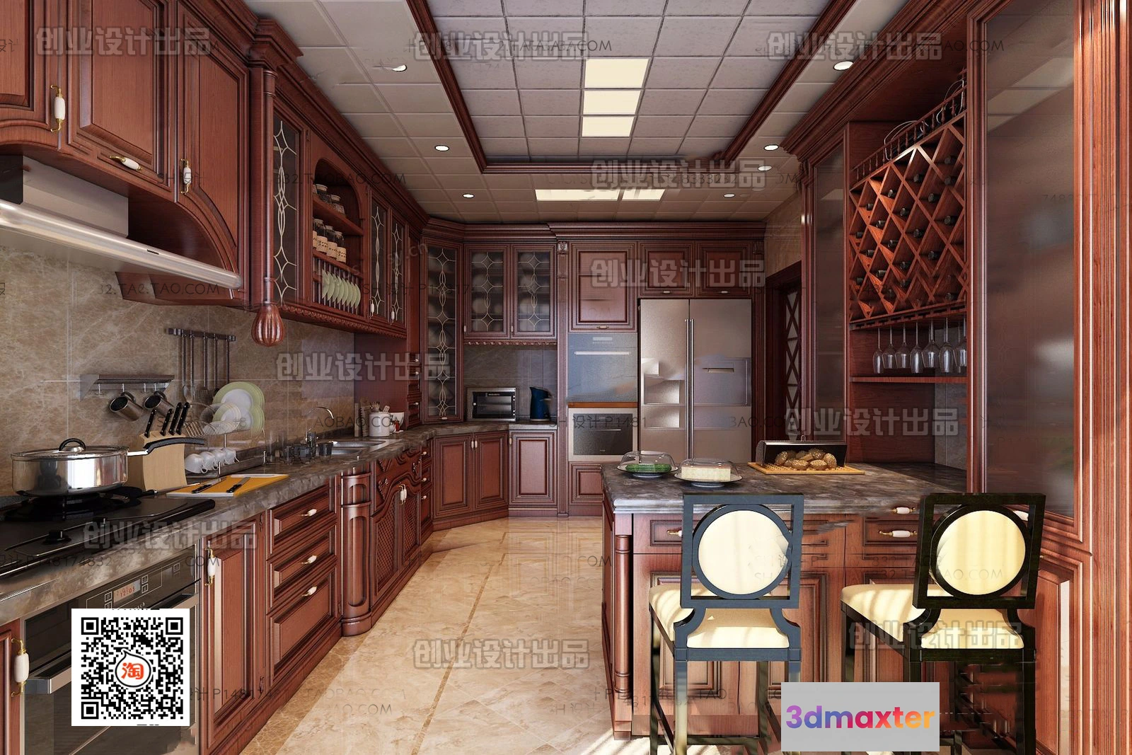 3D Models / 3D Scenes / Interior / Kitchen / Kitchen 3D Interior Scene Model – European Style – 020 3D Max