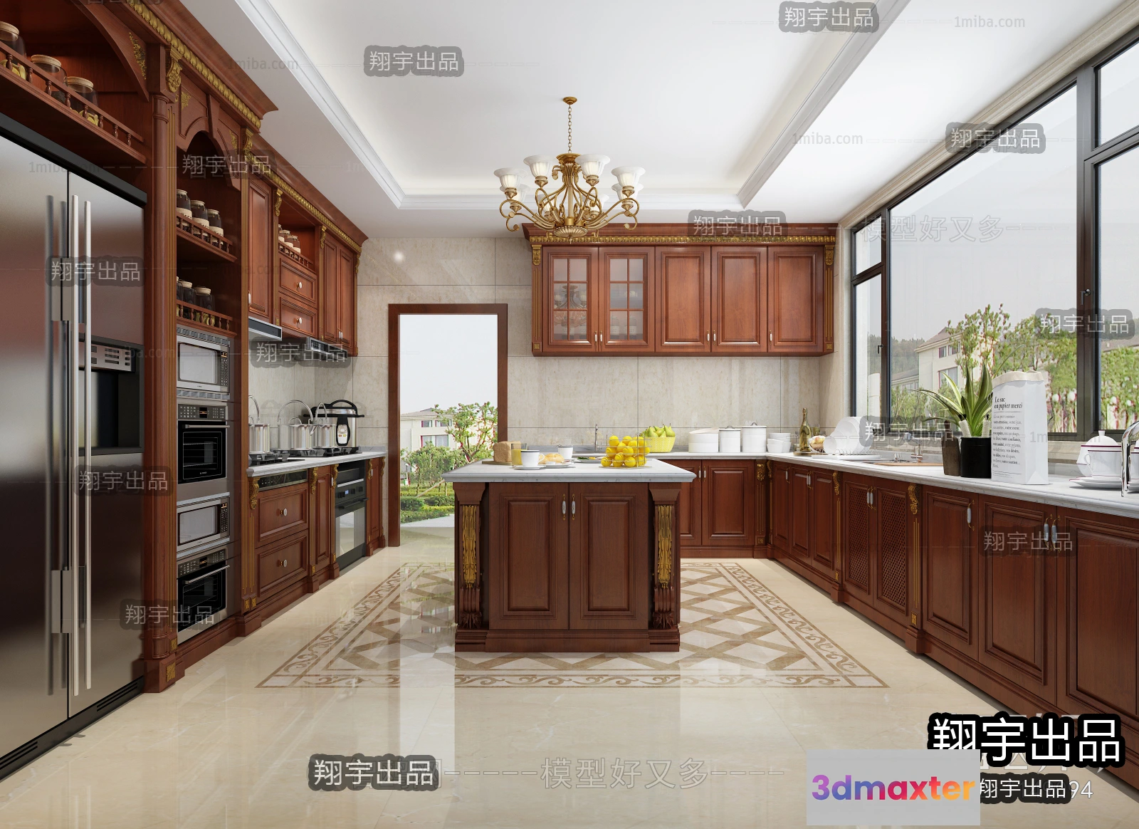 3D Models / 3D Scenes / Interior / Kitchen / Kitchen 3D Interior Scene Model – European Style – 027 3D Max