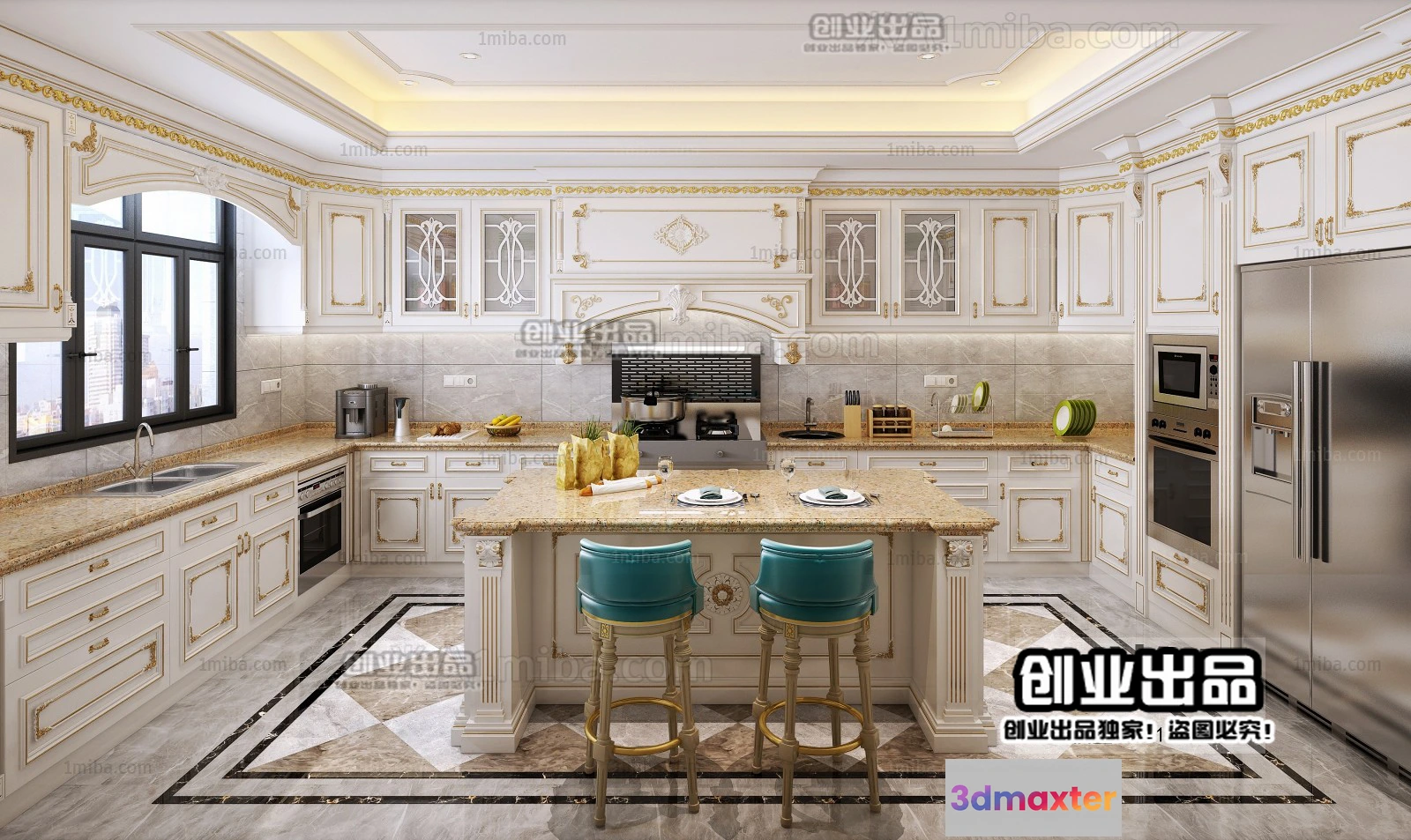 3D Models / 3D Scenes / Interior / Kitchen / Kitchen 3D Interior Scene Model – European Style – 038 3D Max