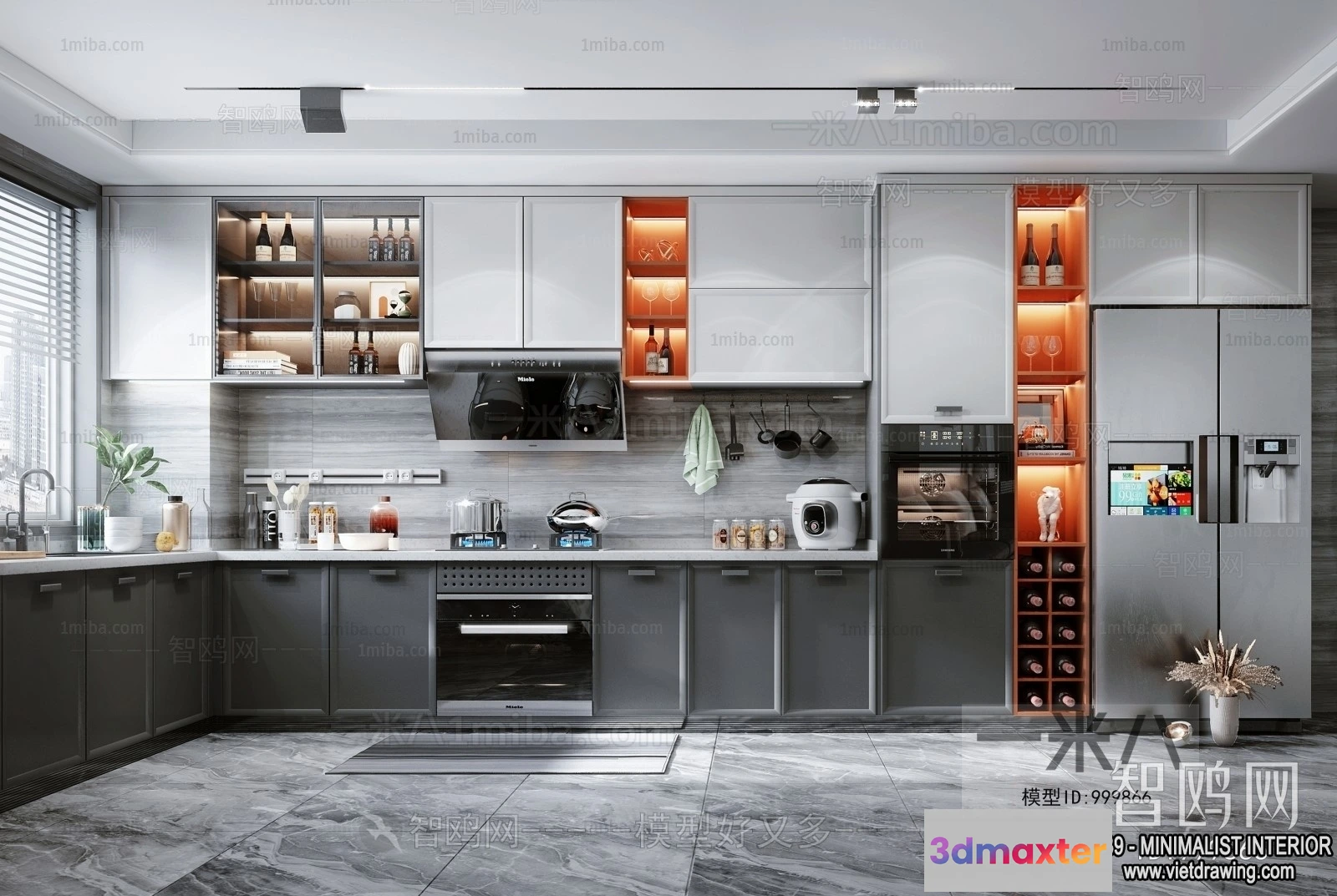 3D Models / 3D Scenes / Interior / Kitchen / Kitchen – Minimalist Style – 3D Interior Scene – 002 3D Max