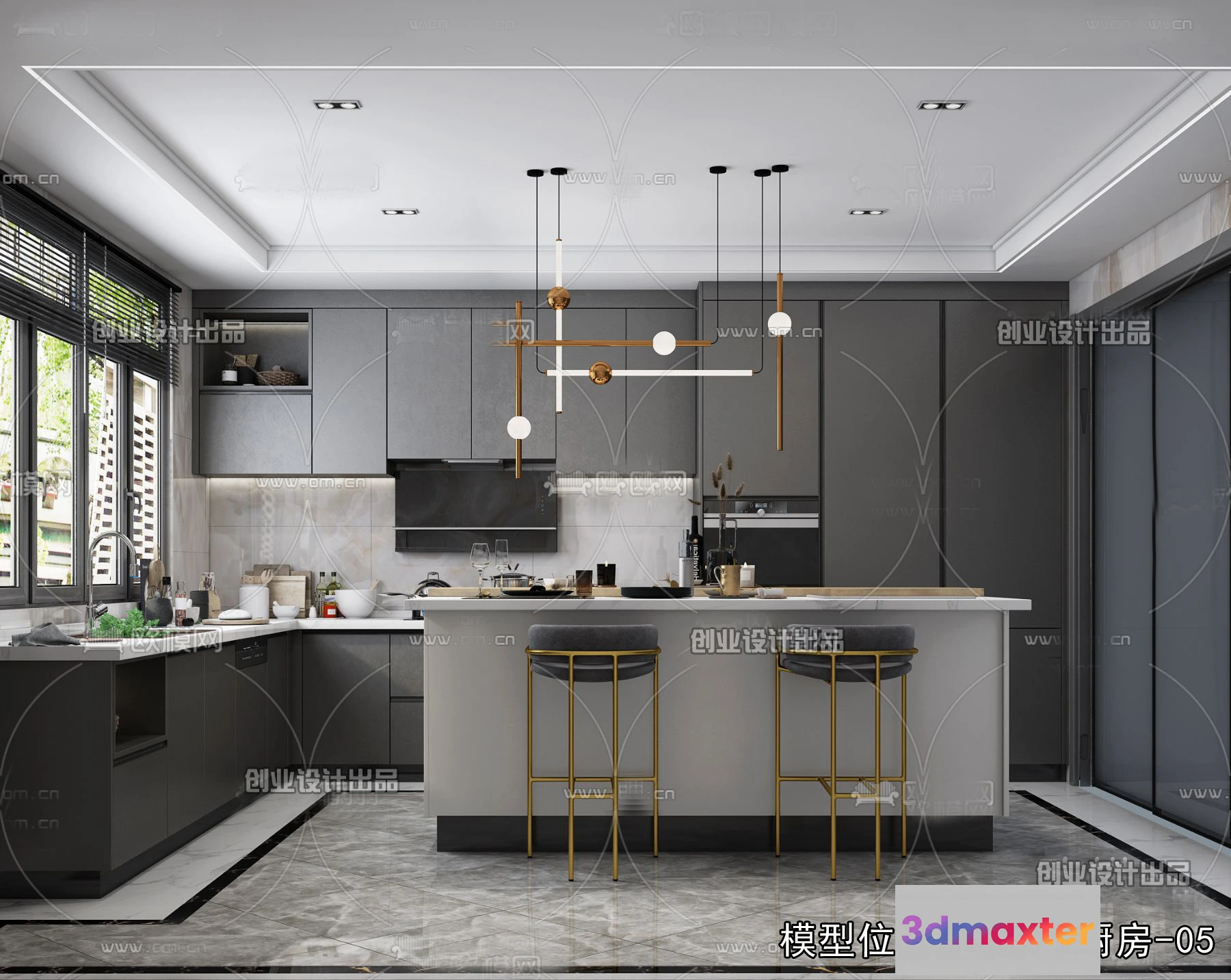 3D Models / 3D Scenes / Interior / Kitchen / Kitchen – Modern Style Interior 3D Scenes – 010 3D Max
