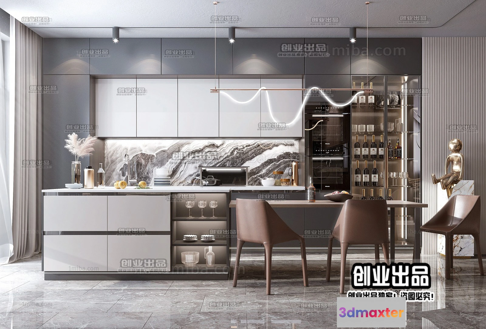 3D Models / 3D Scenes / Interior / Kitchen / Kitchen – Modern Style Interior 3D Scenes – 012 3D Max