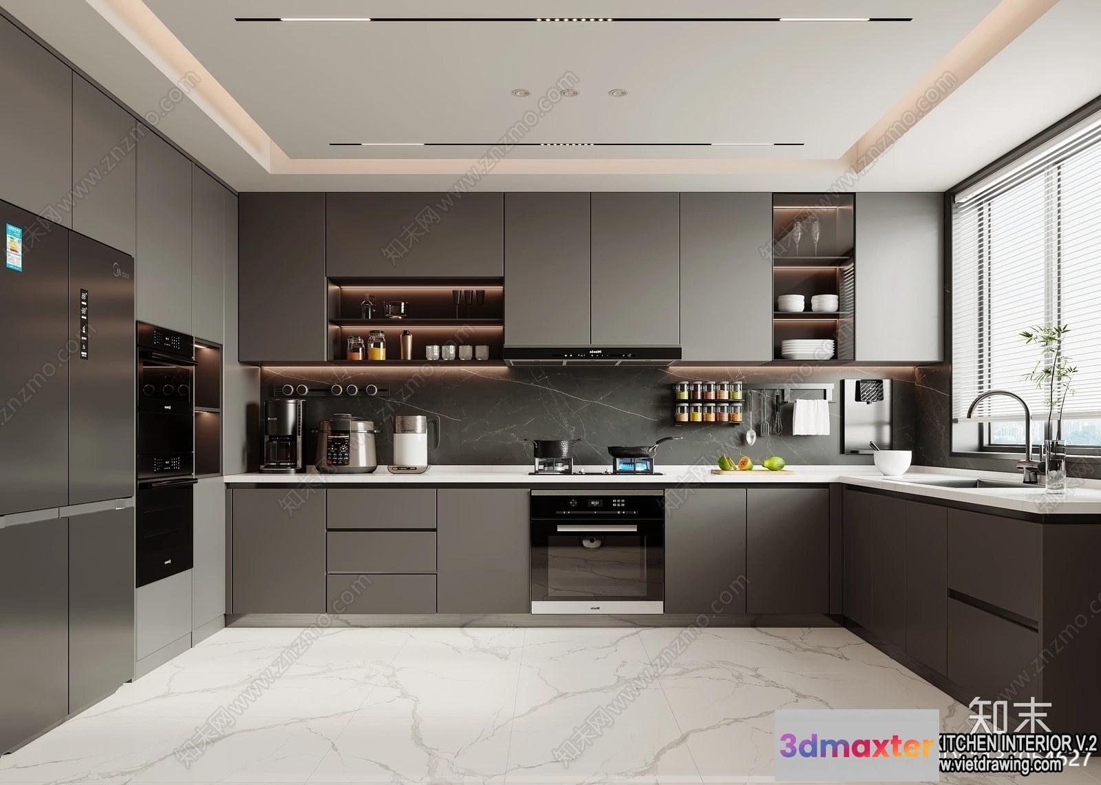 3D Models / 3D Scenes / Interior / Kitchen / Kitchen – Modern Style Interior 3D Scenes – 210 3D Max