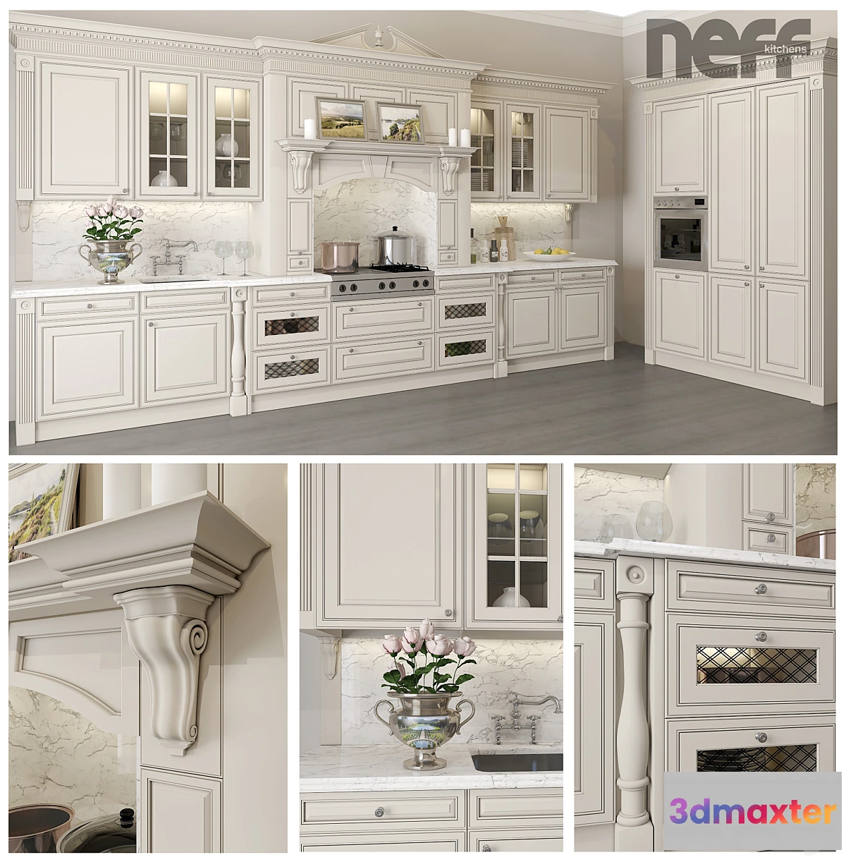 Kitchen of the Canadian factory Neff kitchens. The model uses the facade No. 75 the lower boxes with the Grille spreading. Techniques and accessories are present.