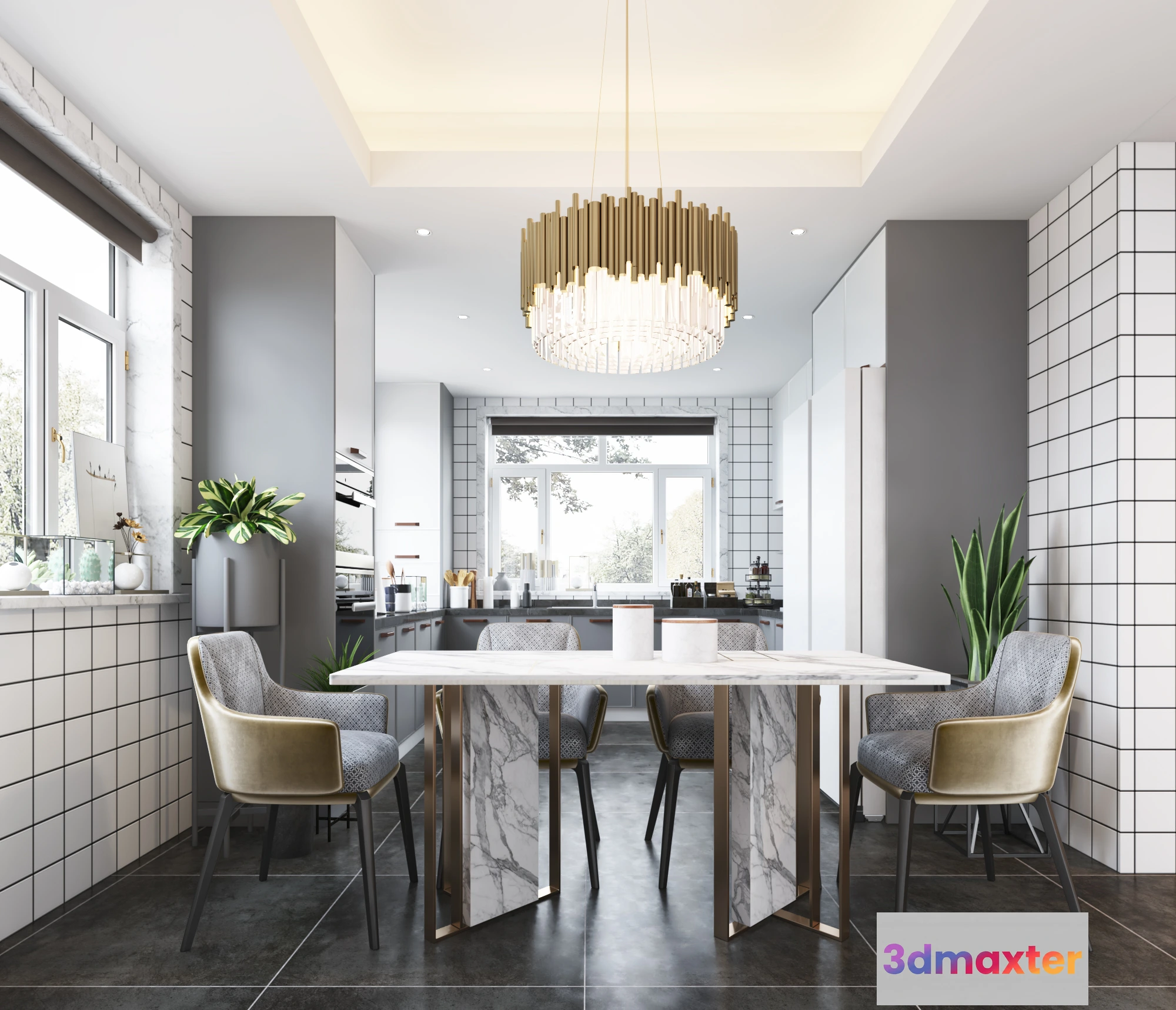 3D Models / 3D Scenes / Interior / Kitchen / KITCHEN SETS – 2232