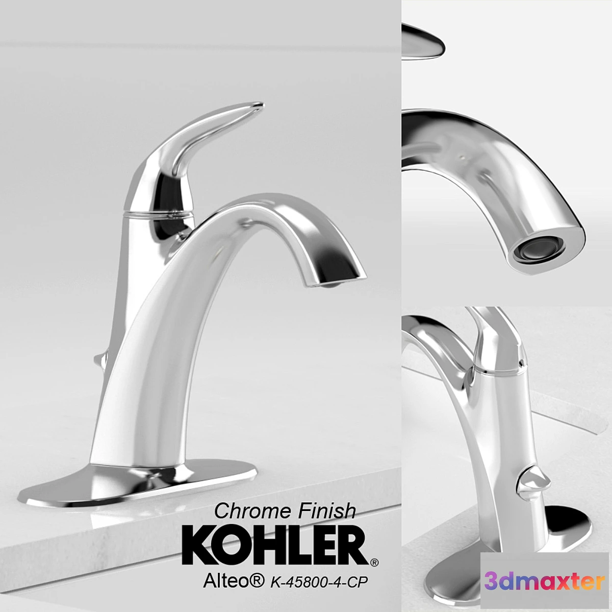 KOHLER Alteo Single-Handle Faucet – Code (K-45800-4-CP) Chrome Brushed and Oil-Rubbed Finishes – Archive containes: Max file v.2015 – Max file v.2012 – OBJ file – Brushed Metal Bitmap