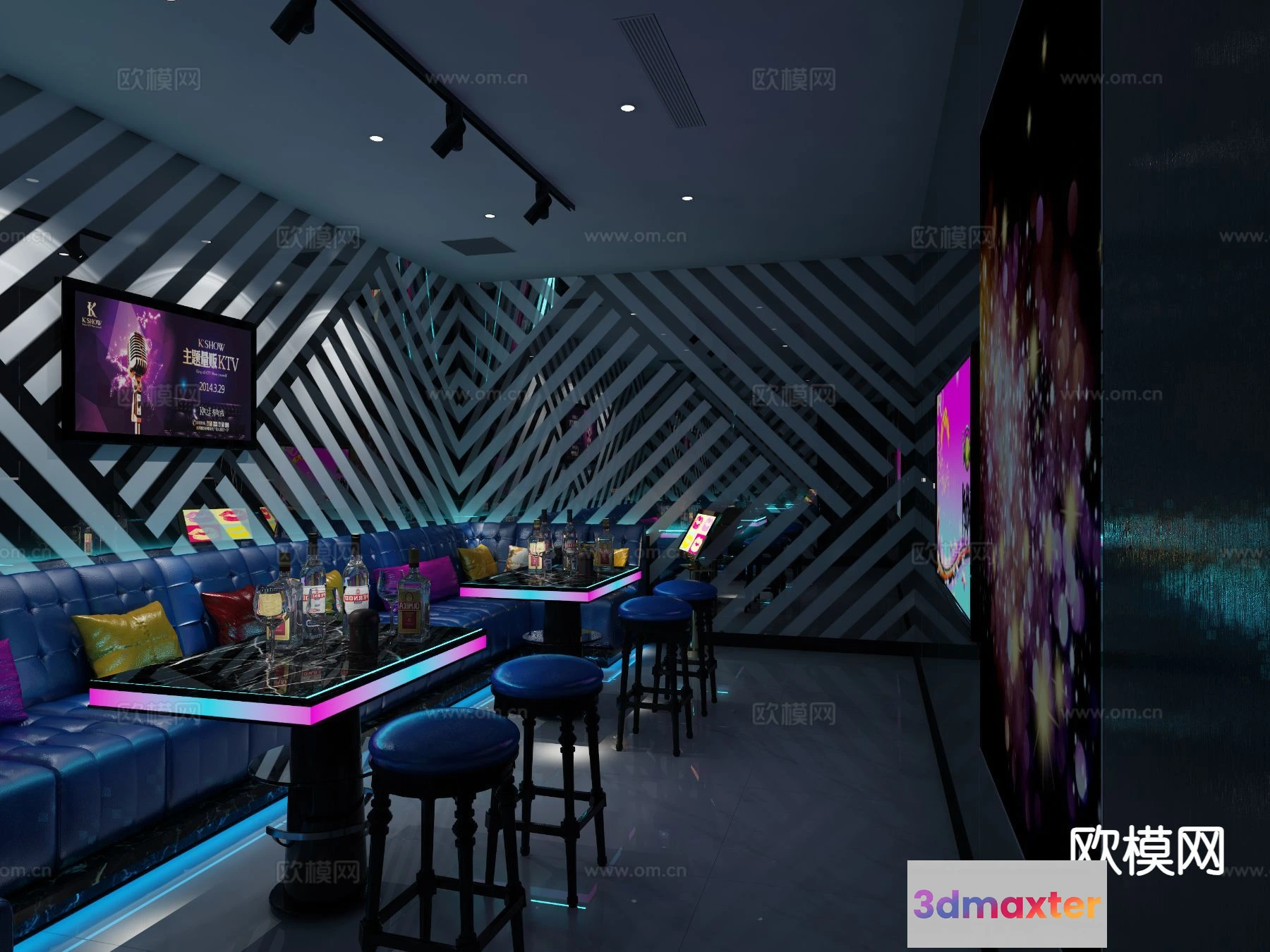 3D Models / 3D Scenes / Interior / Commercial Spaces / KTV Interior 3D Models – Karaoke – 083 – VRAY Render 3D Max