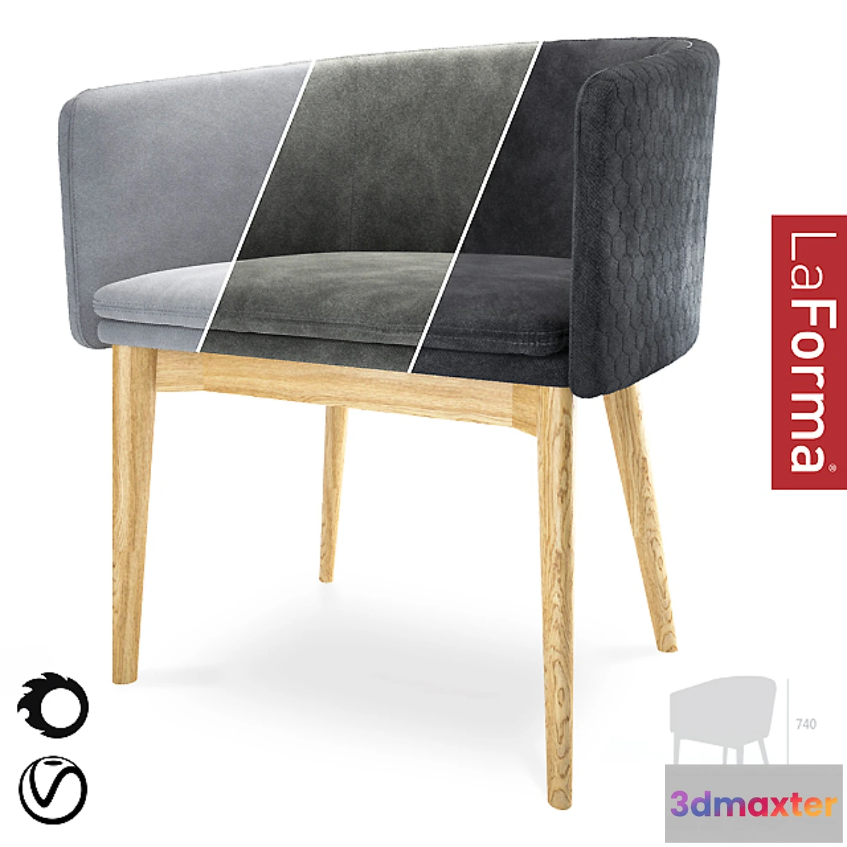 The chair is made in quilted fabric upholstery. Feet from an array of ash.