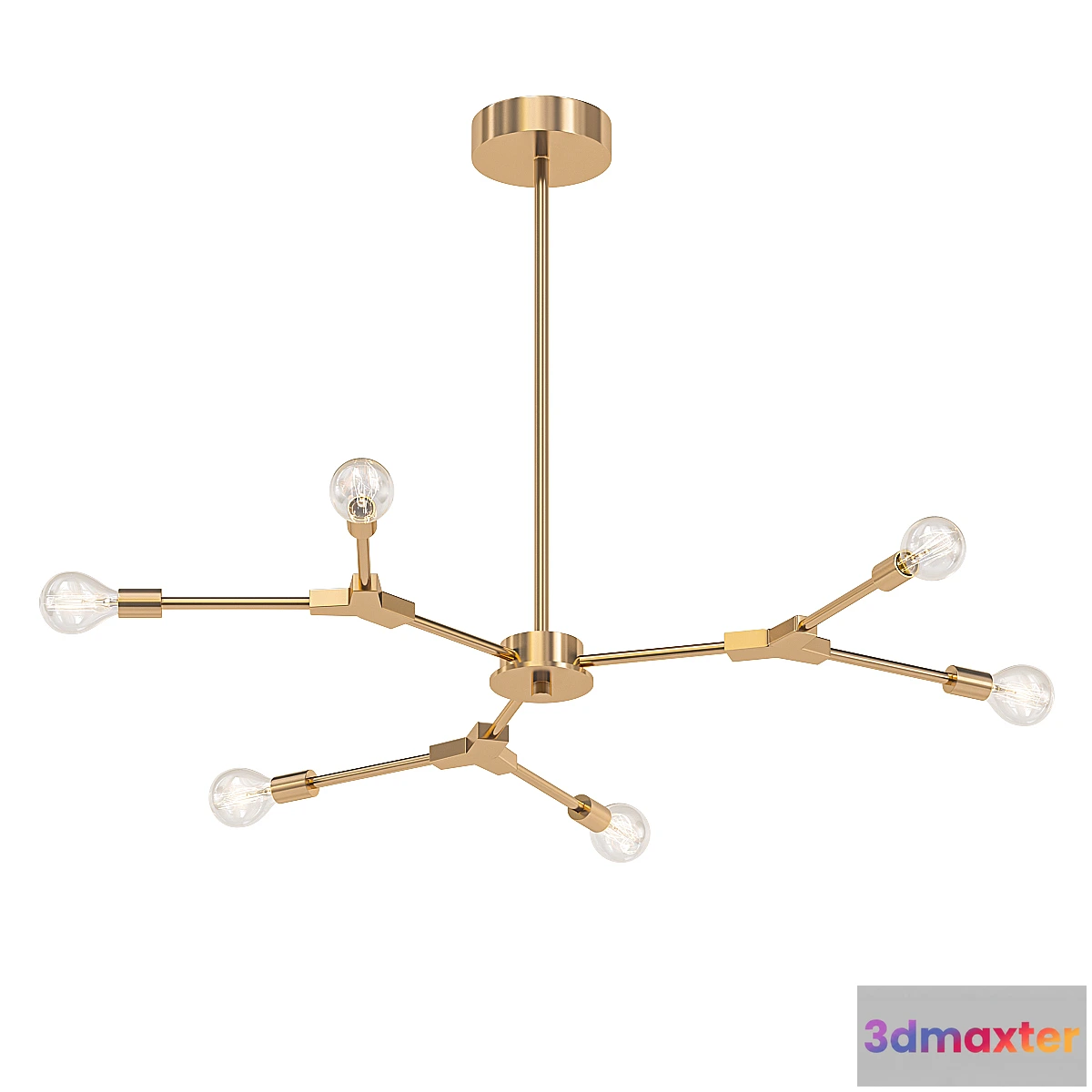 Chandelier with open light sources on a branchy adjustable frame. Brass or black colors.