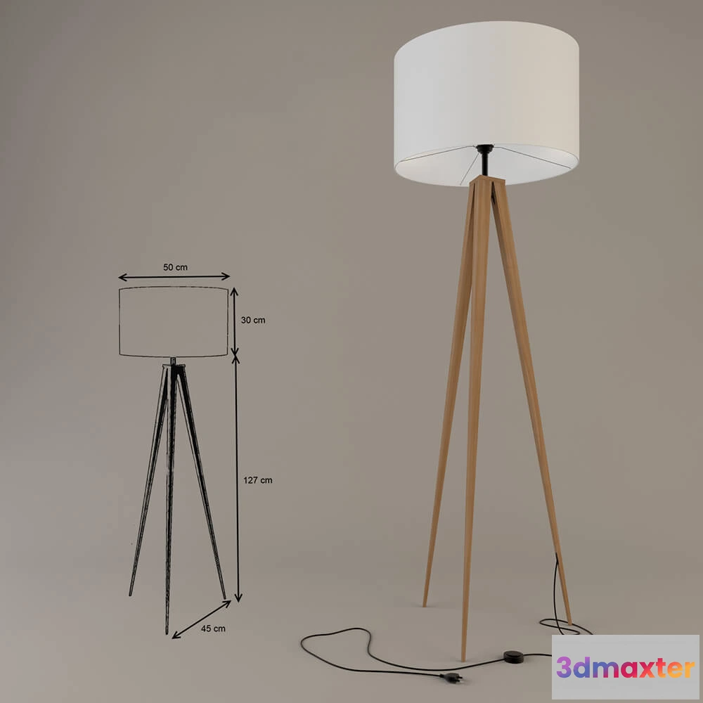 3D Models / Lighting / Floor Lamp / lighting – Floor lamp with wooden legs 3D Max