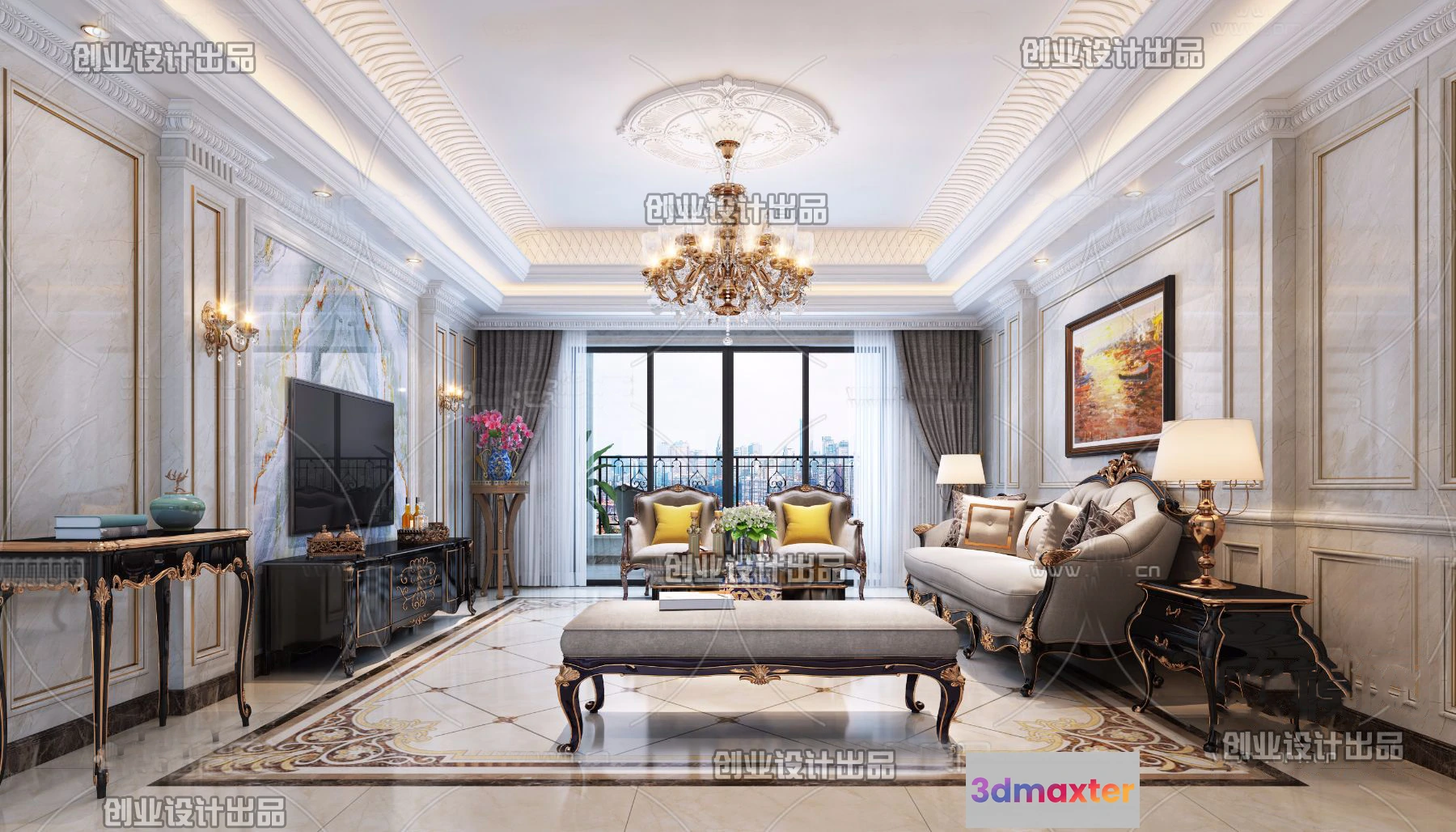 3D Models / 3D Scenes / Interior / Living Room / Living Room 3D Interior Scene – European Style – 044 3D Max