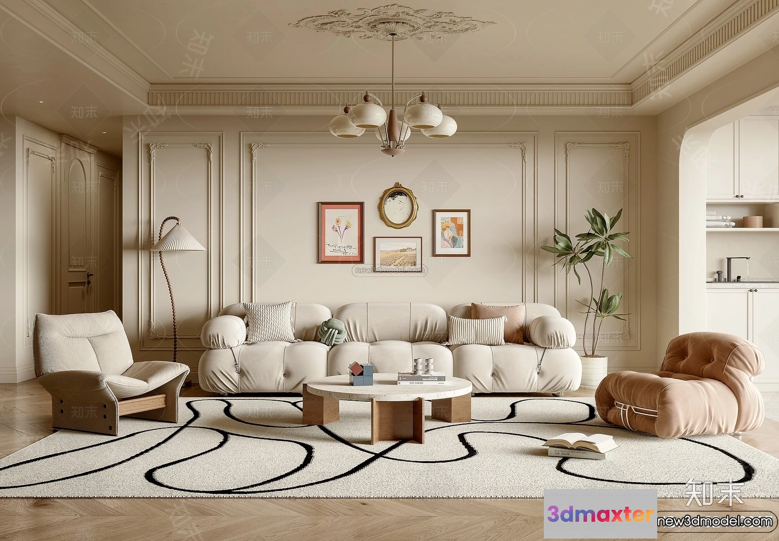 3D Models / 3D Scenes / Interior / Living Room / Living Room – 3D Interior Scene – French Style – 009 3D Max