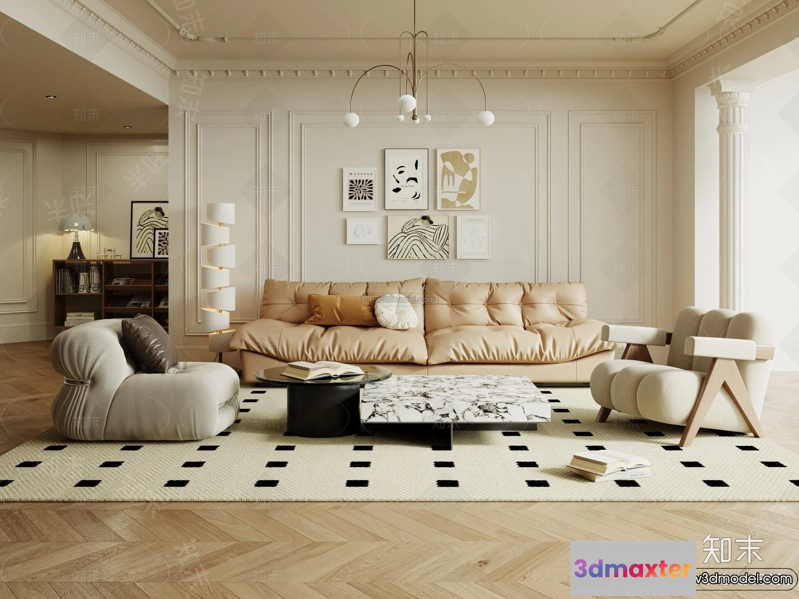 3D Models / 3D Scenes / Interior / Living Room / Living Room – 3D Interior Scene – French Style – 032 3D Max