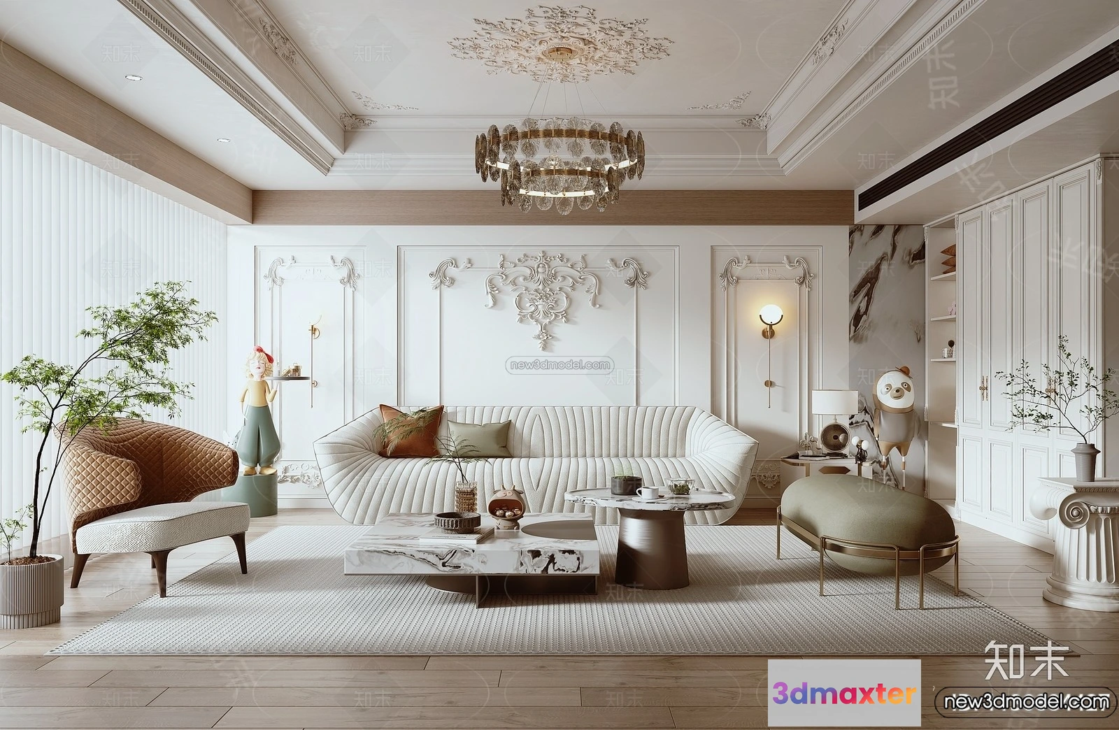 3D Models / 3D Scenes / Interior / Living Room / Living Room – 3D Interior Scene – French Style – 129 3D Max