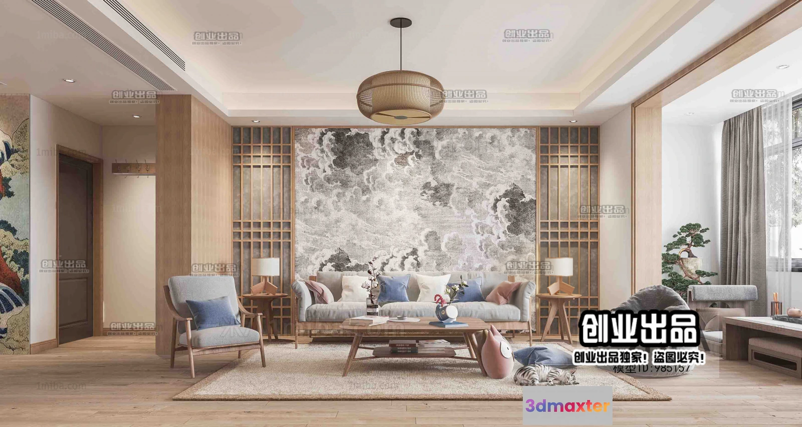 3D Models / 3D Scenes / Interior / Living Room / Living Room 3D Interior Scene – Japanese Style – 009 3D Max