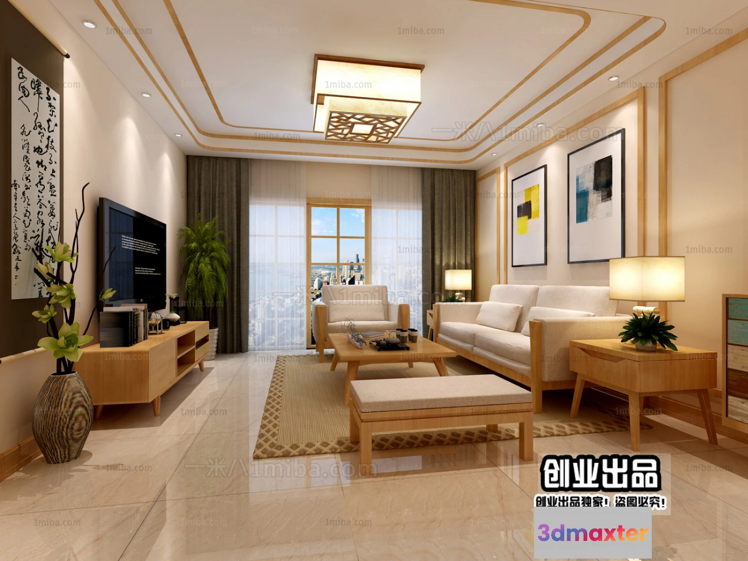 3D Models / 3D Scenes / Interior / Living Room / Living Room 3D Interior Scene – Japanese Style – 024 3D Max