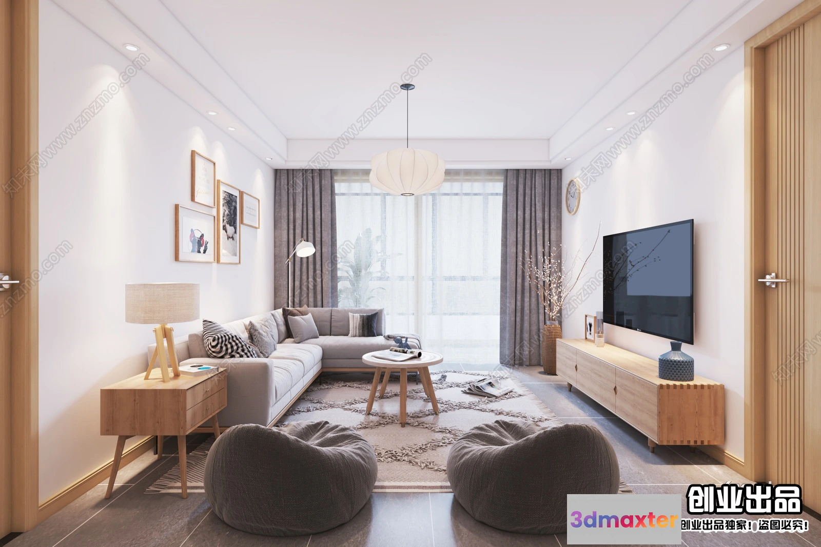 3D Models / 3D Scenes / Interior / Living Room / Living Room 3D Interior Scene – Japanese Style – 030 3D Max