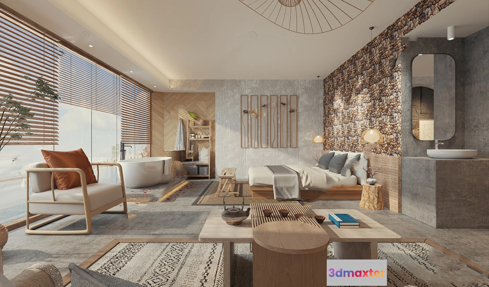 3D Models / 3D Scenes / Interior / Living Room / Living Room 3D Interior Scene Model – Wabi Sabi Style – 014 3D Max