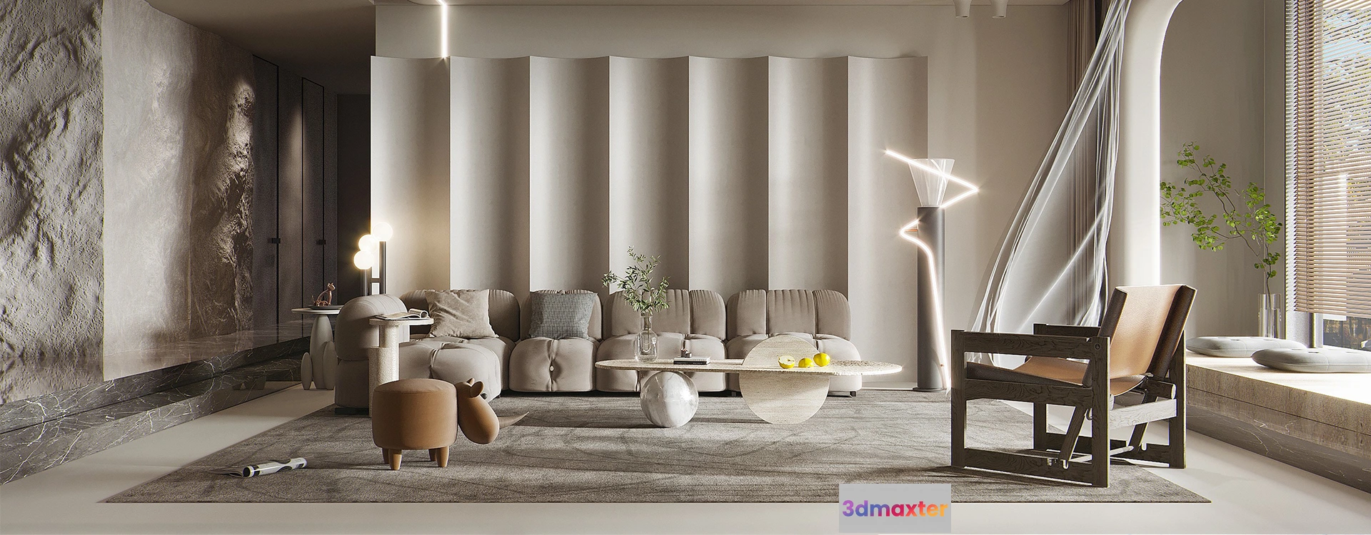 3D Models / 3D Scenes / Interior / Living Room / Living Room 3D Interior Scene Model – Wabi Sabi Style – 030 3D Max