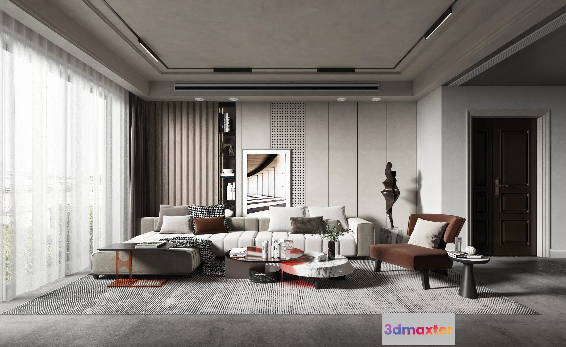 Living Room 3D Interior Scene Model – Wabi Sabi Style – 059 3D Max