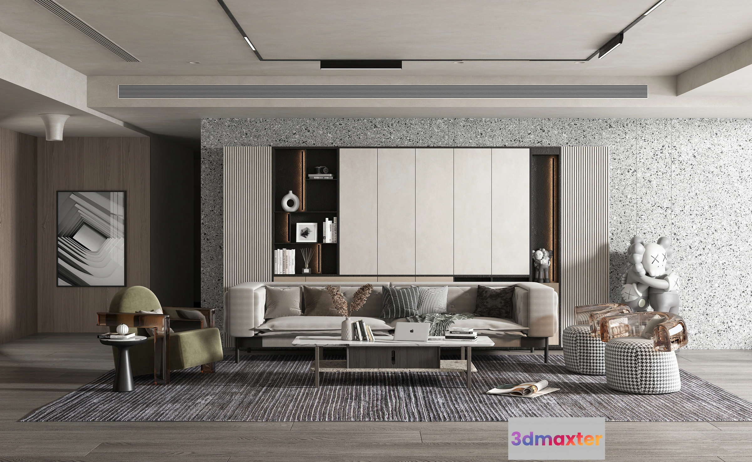 3D Models / 3D Scenes / Interior / Living Room / Living Room 3D Interior Scene Model – Wabi Sabi Style – 073 3D Max
