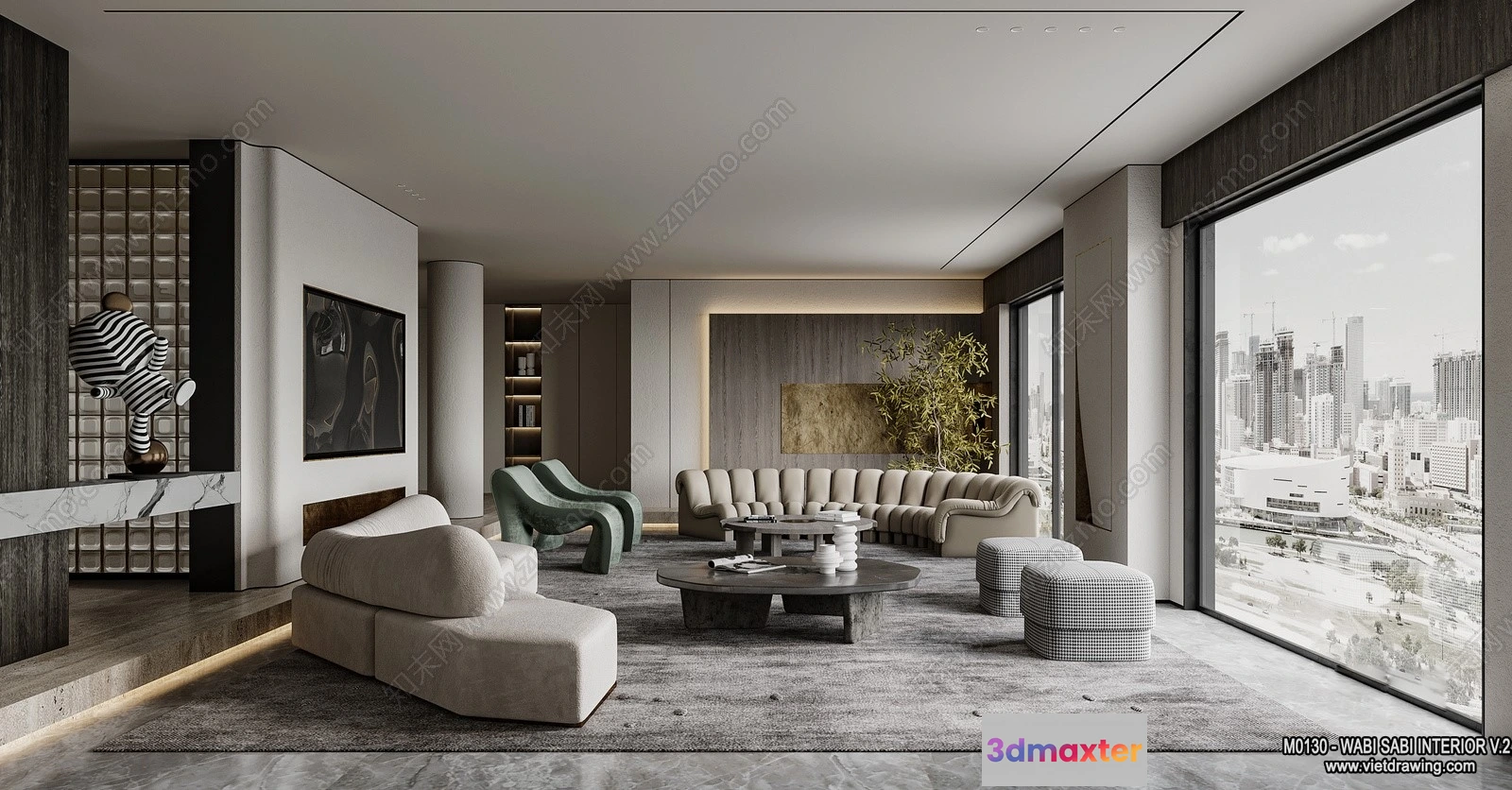 3D Models / 3D Scenes / Interior / Living Room / Living Room 3D Interior Scene Model – Wabi Sabi Style – 082 3D Max