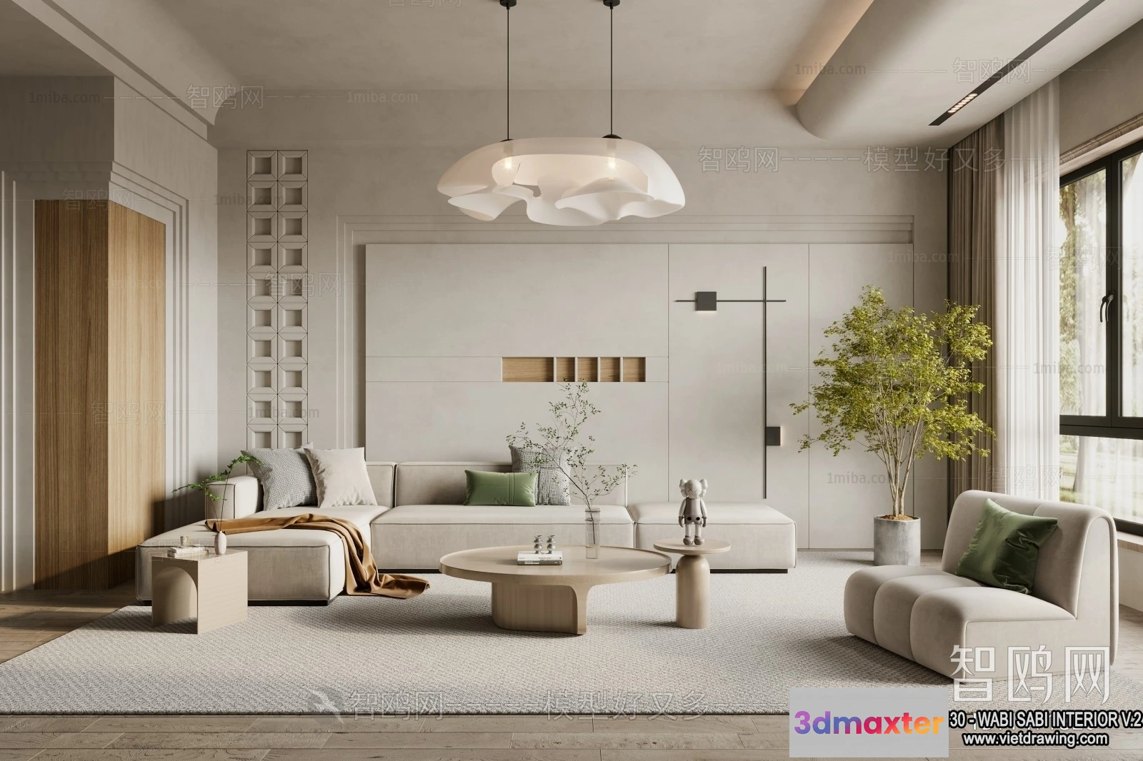 3D Models / 3D Scenes / Interior / Living Room / Living Room 3D Interior Scene Model – Wabi Sabi Style – 101 3D Max