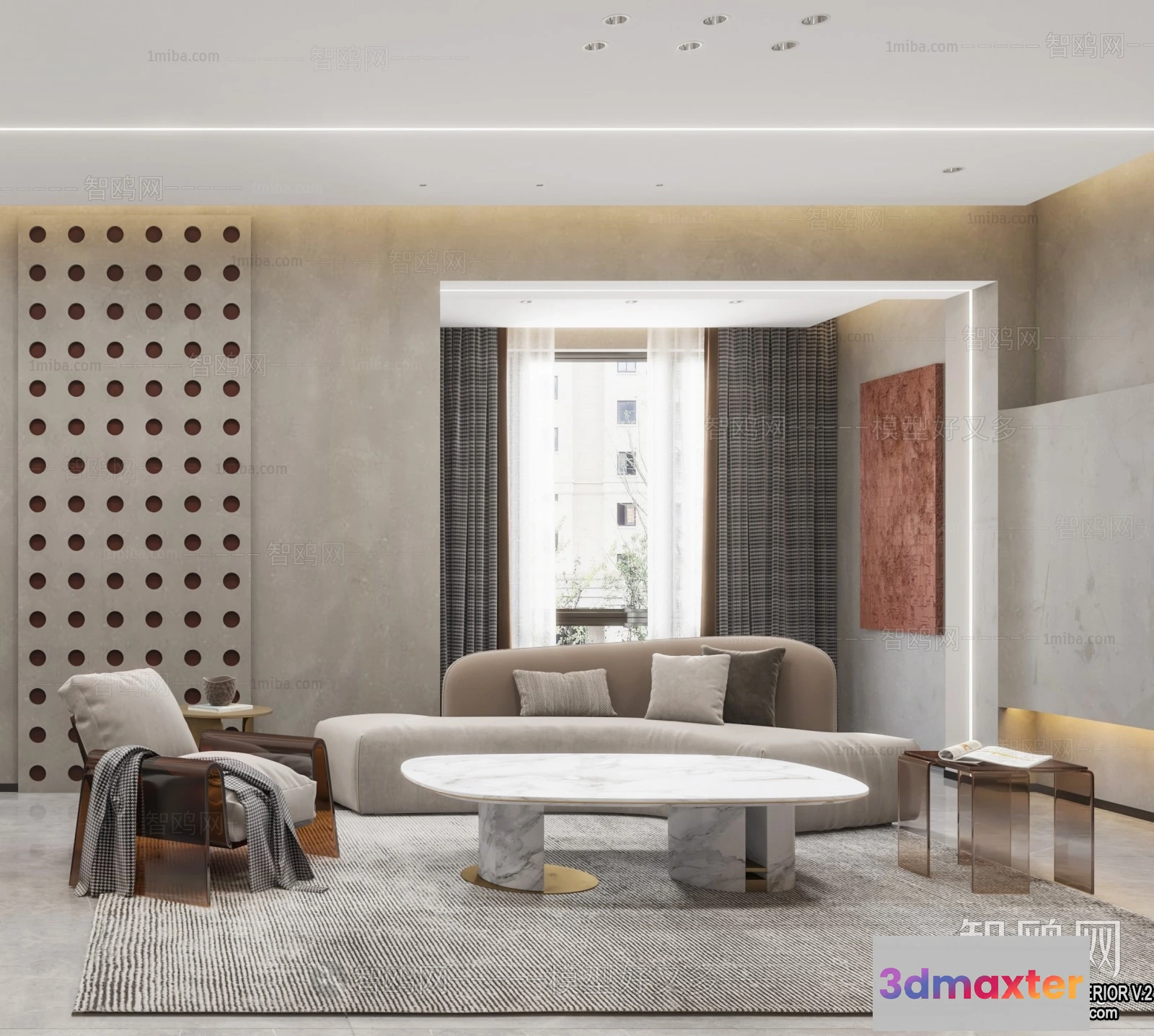 3D Models / 3D Scenes / Interior / Living Room / Living Room 3D Interior Scene Model – Wabi Sabi Style – 129 3D Max