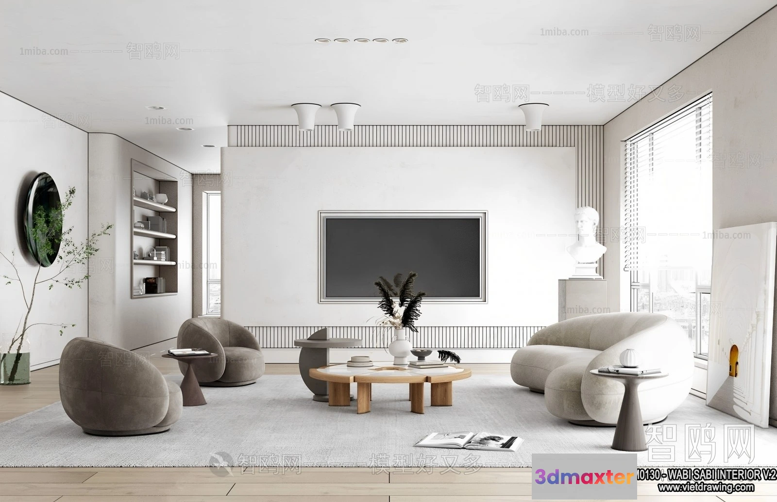 Living Room 3D Interior Scene Model – Wabi Sabi Style – 159 3D Max