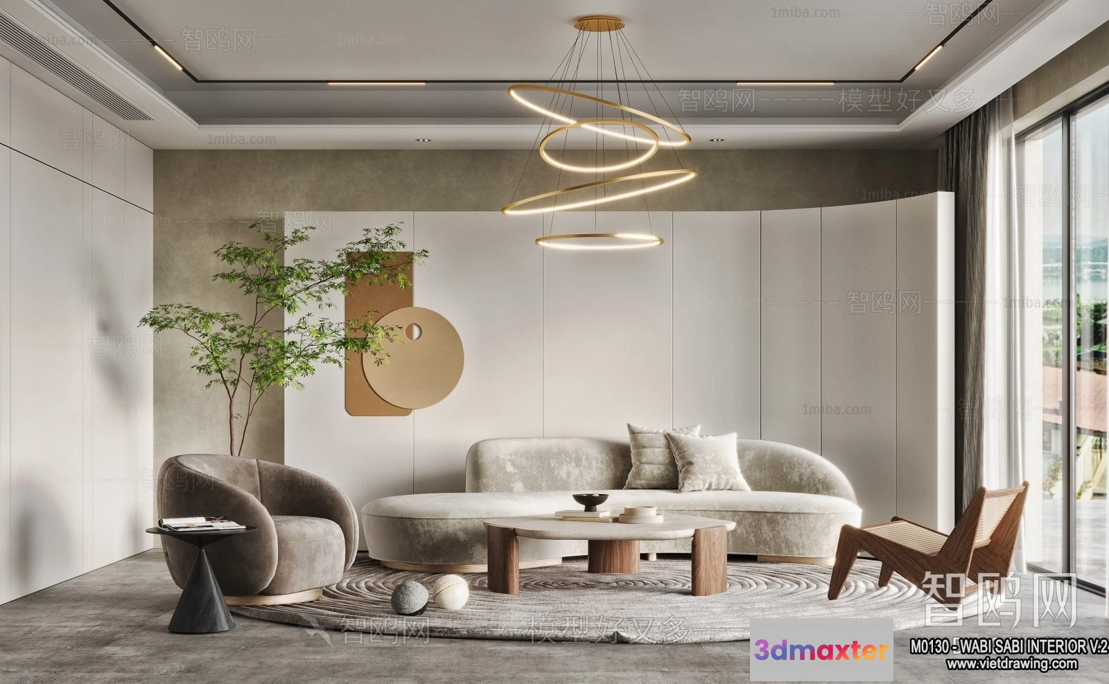 3D Models / 3D Scenes / Interior / Living Room / Living Room 3D Interior Scene Model – Wabi Sabi Style – 198 3D Max