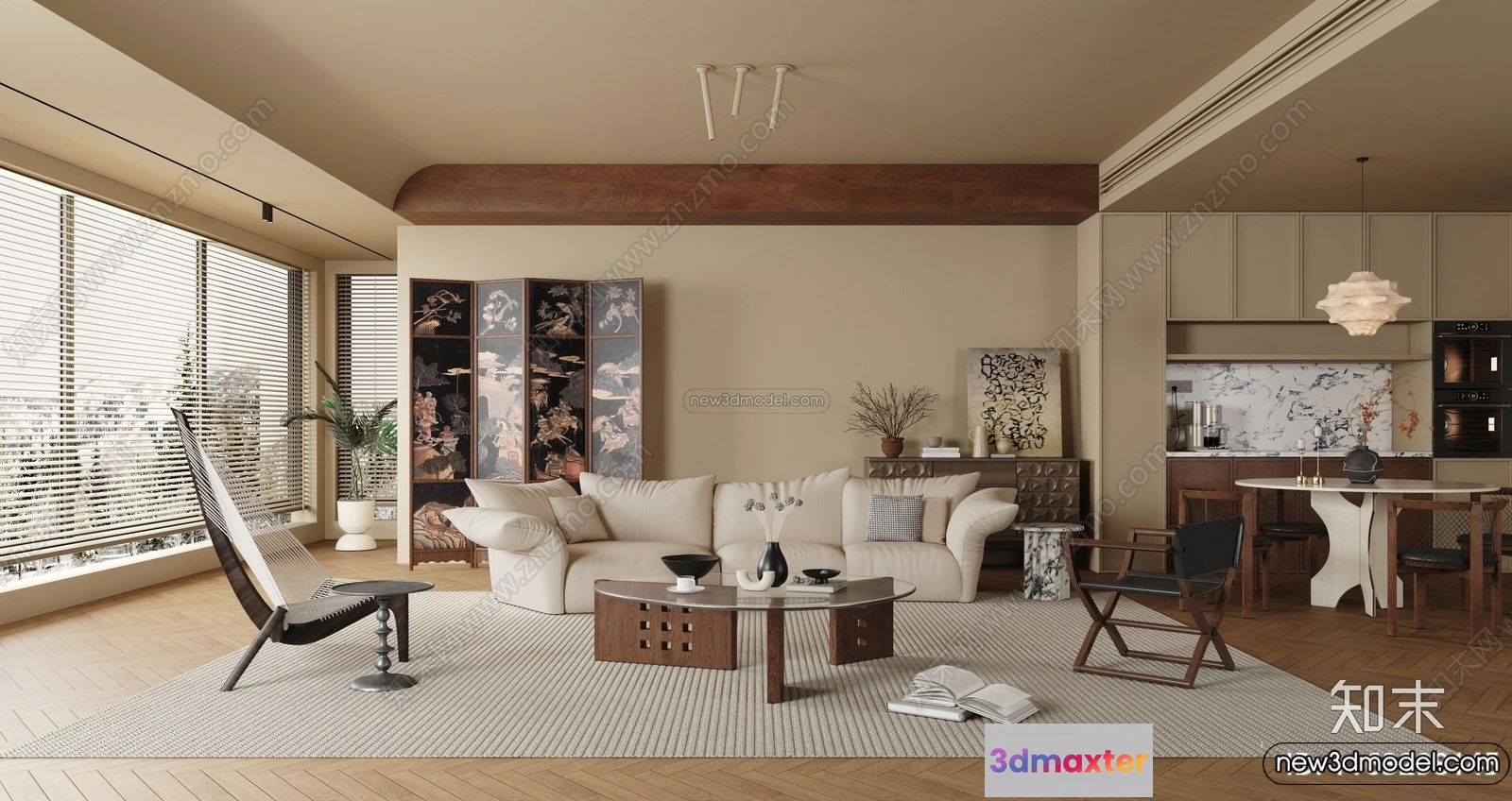3D Models / 3D Scenes / Interior / Living Room / Living Room 3D Interior Scene Model – Wabi Sabi Style – 211 3D Max