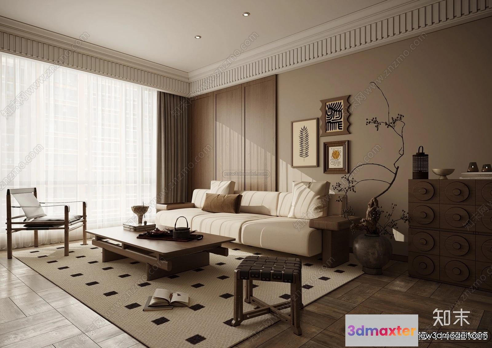 3D Models / 3D Scenes / Interior / Living Room / Living Room 3D Interior Scene Model – Wabi Sabi Style – 237 3D Max