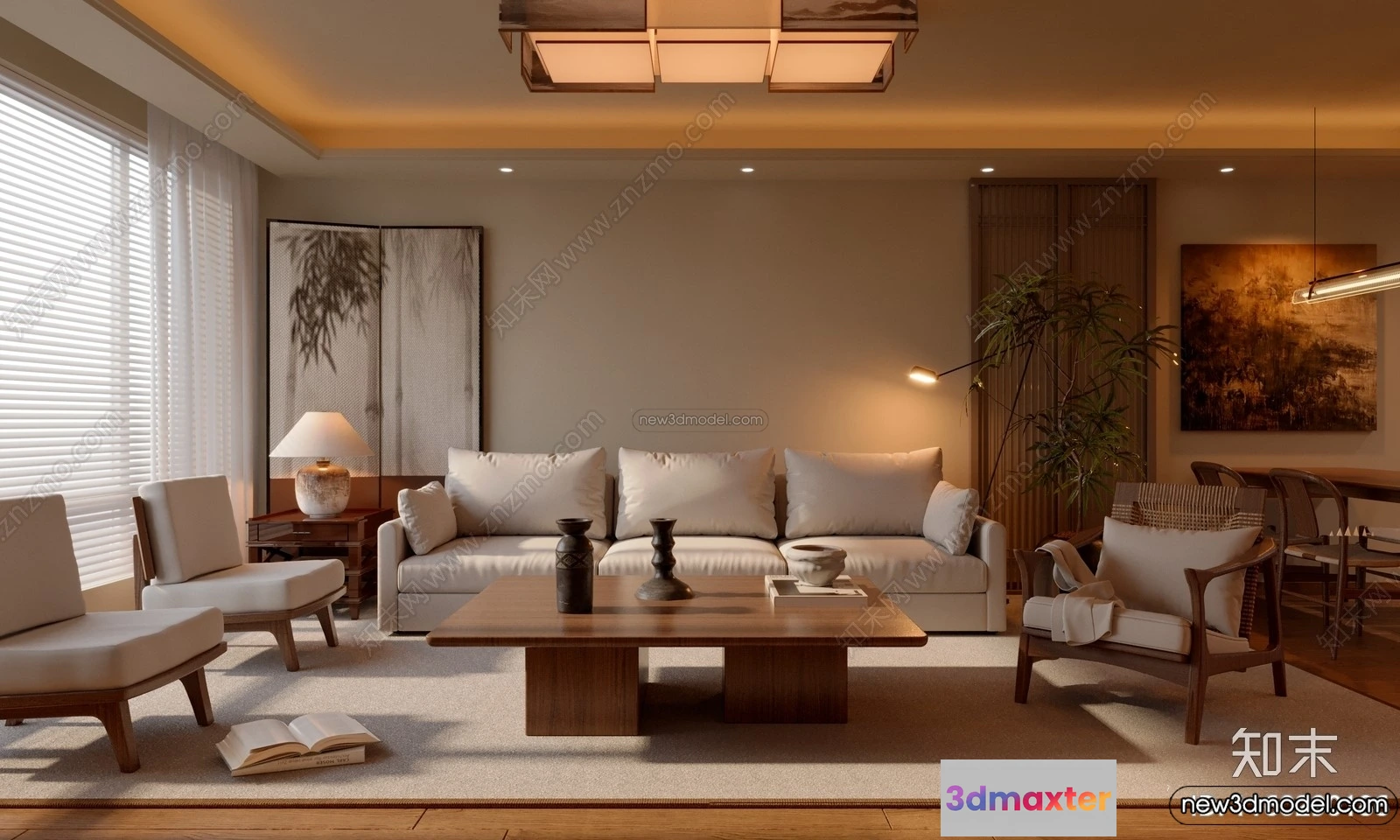3D Models / 3D Scenes / Interior / Living Room / Living Room 3D Interior Scene Model – Wabi Sabi Style – 252 3D Max