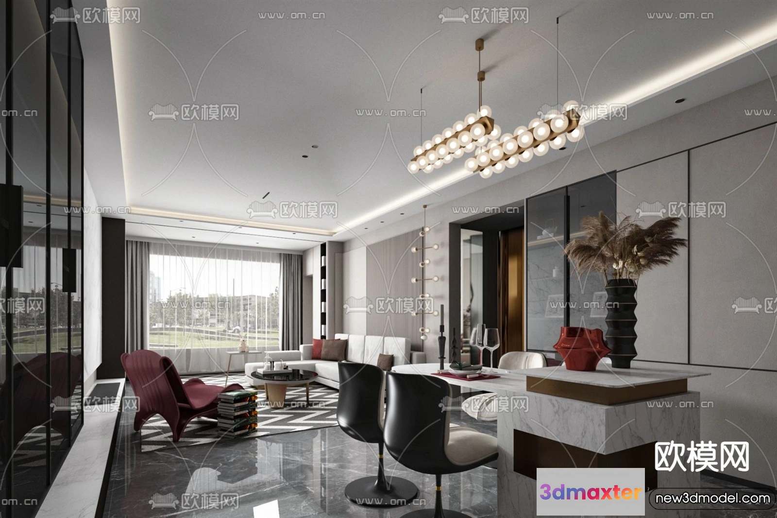 3D Models / 3D Scenes / Interior / Living Room / Living Room – 3D Models – 3D Interior Scenes – Modern Style – 237 3D Max